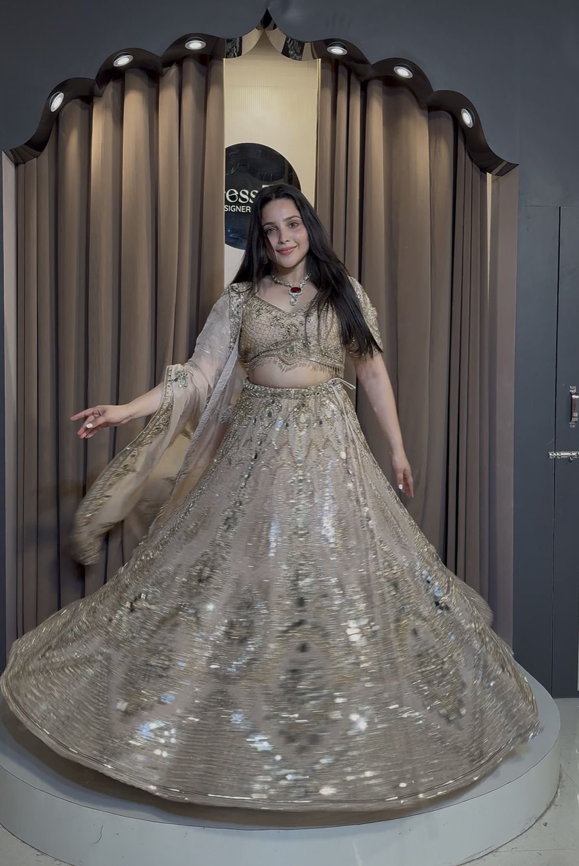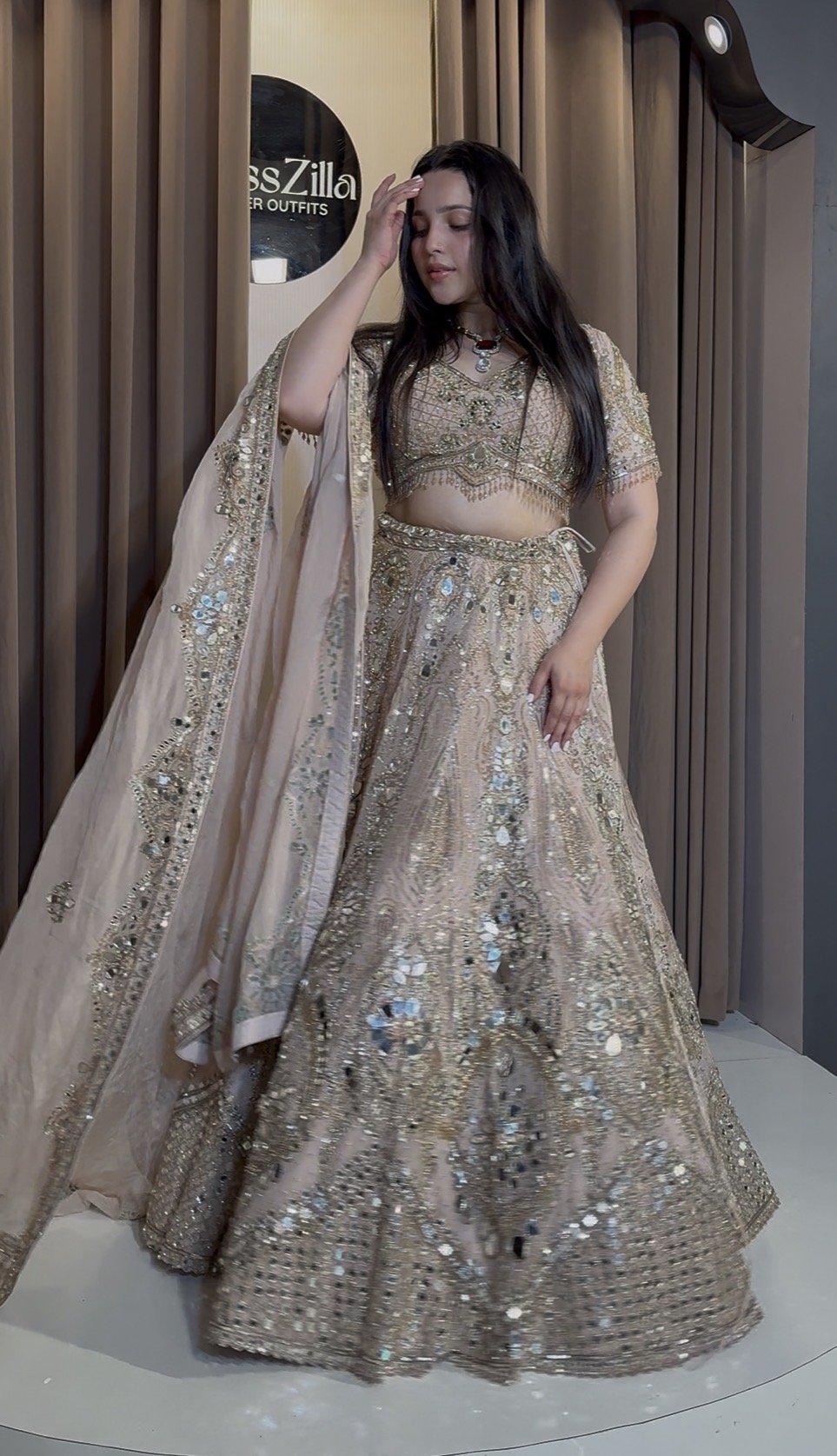 & Free ShippingStep into elegance with the BEIGE ABHINAV MISHRA lehenga set, beautifully crafted in a soft beige tone and adorned with intricate sequin and mirror work. This set features a stylishly embellished blouse with short sleeves and a flattering neckline, paired with a voluminous skirt designed for a graceful look. The matching dupatta completes the ensemble, perfect for weddings, festive celebrations, or any grand occasion. Designed for comfort and sophistication, this luxury outfit ensures you shine at every event.