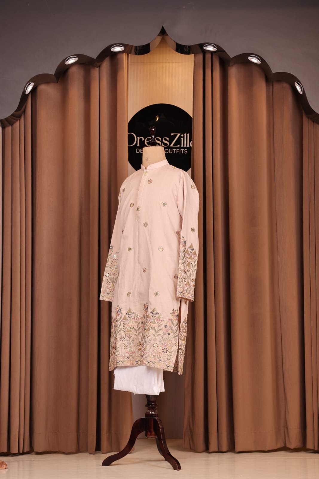 & Free ShippingExude grace and understated luxury with this soft blush pink kurta. Perfectly suited for daytime weddings, festive brunches, and family gatherings, this piece features delicate artisanal details that celebrate classic craftsmanship.