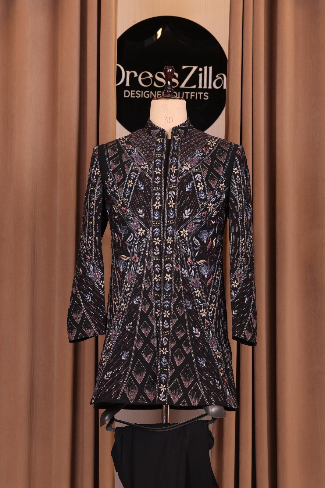 Step into the spotlight with our Midnight Mosaic Indowestern, a garment that redefines luxury through its dense, intricate artistry. This long-form jacket is designed for the connoisseur who appreciates the depth of traditional handwork combined with a sharp, contemporary silhouette.
