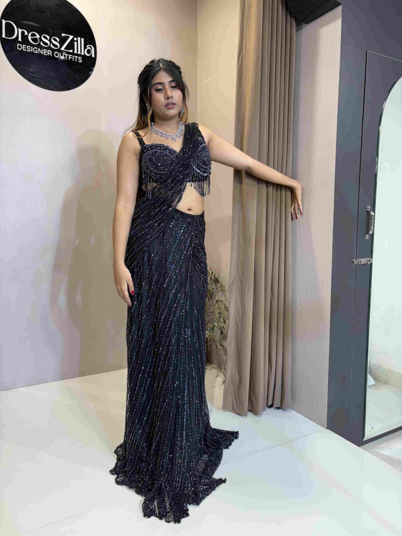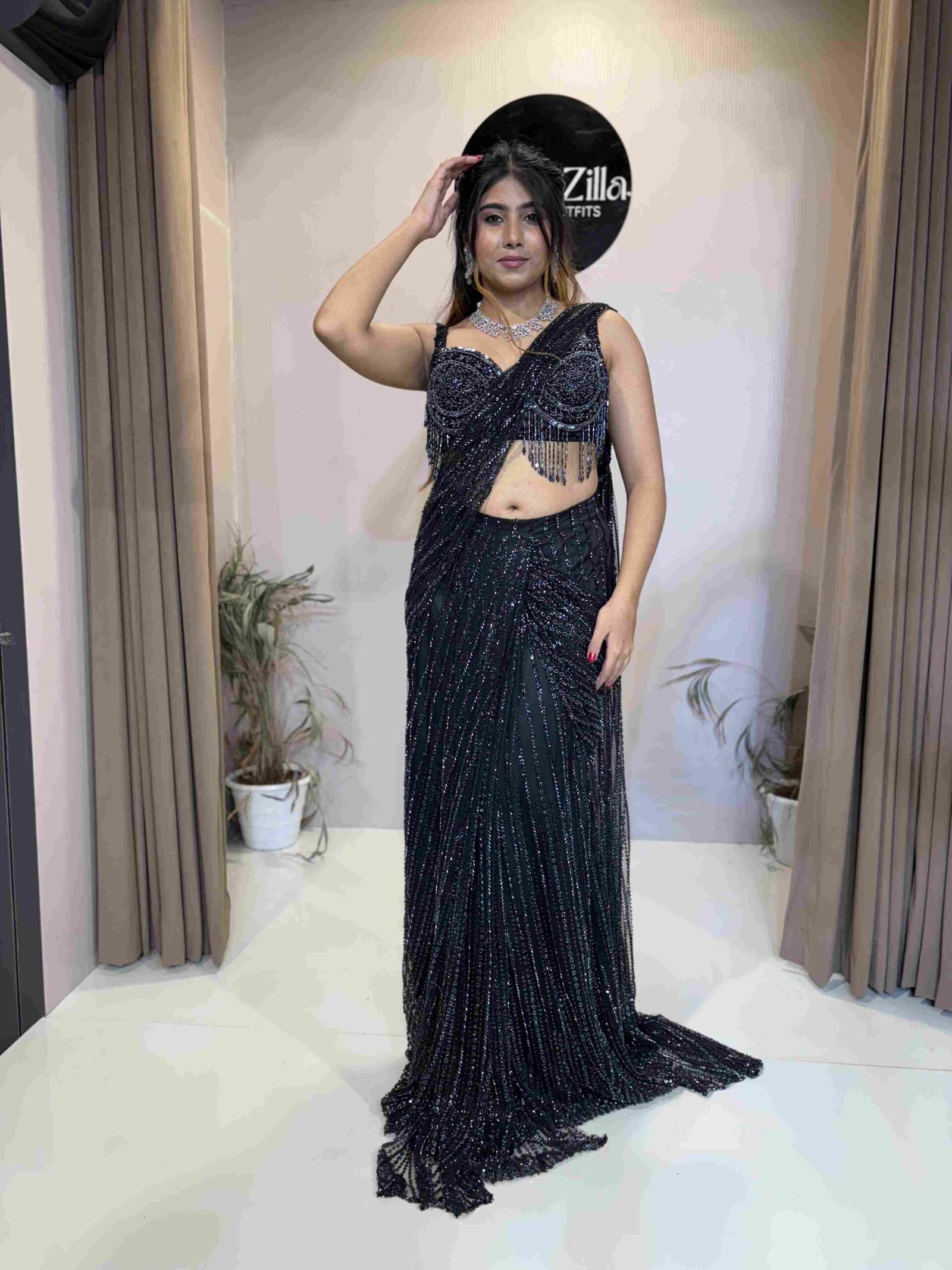 The Black Antya Saree is a stunning blend of elegance and modern charm. Crafted with a hand-embroidered blouse and a beautiful drape saree, this outfit is perfect for any festive or special occasion. The rich black color adds a timeless touch, while the intricate detailing on the blouse enhances its luxurious appeal. Designed in a free size fit, it offers both comfort and style effortlessly.