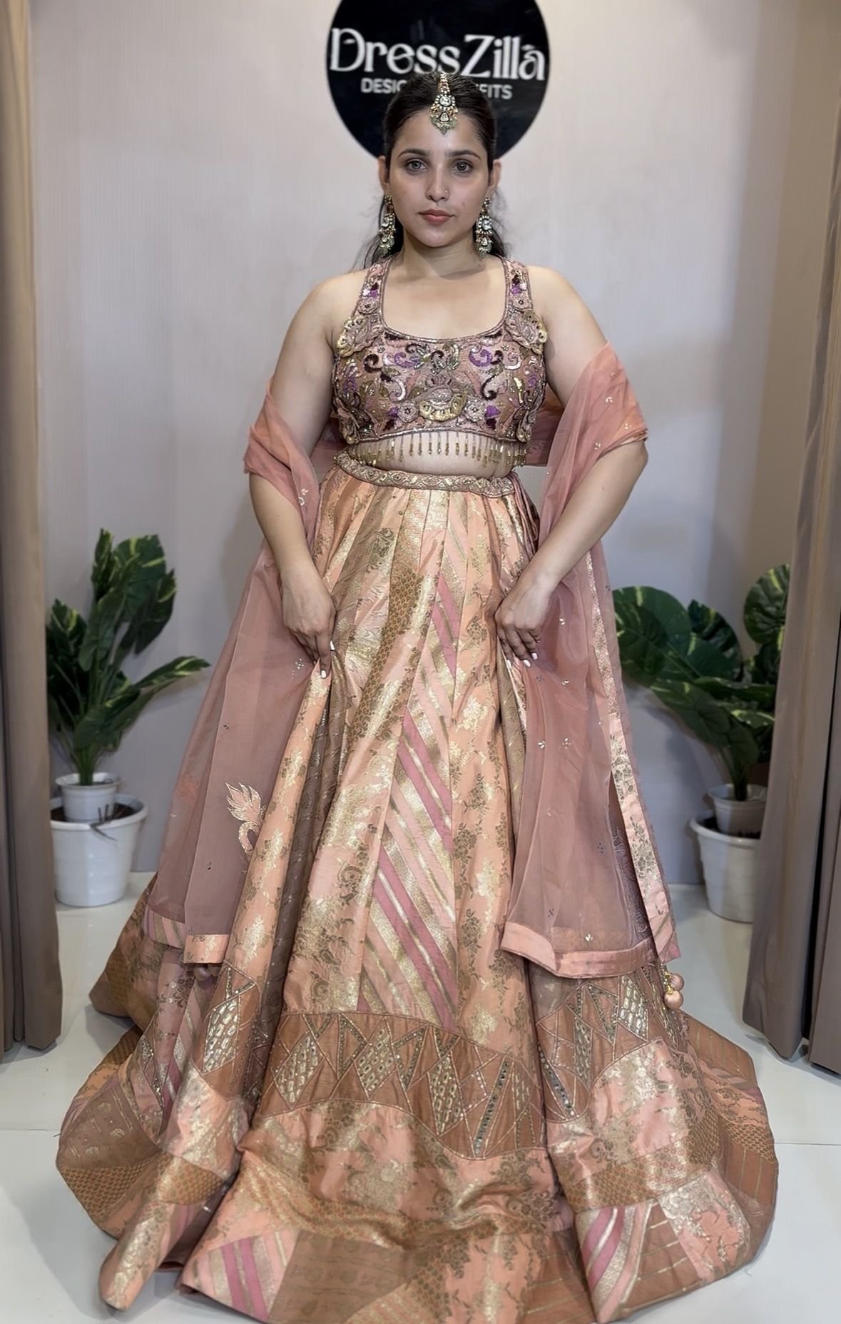 & Free ShippingExperience the charm of timeless elegance with the PINK PEACH SILK SS LEHNGA. Crafted from luxurious silk, this stunning lehenga presents a beautiful blend of pink and peach hues, adorned with intricate golden embroidery and delicate embellishments. The stylish sleeveless blouse offers a modern twist to traditional design, while the flowing lehenga skirt features eye-catching patterns and a rich sheen. Paired with a sheer dupatta, this outfit delivers the perfect balance of sophistication and festive shimmer. Ideal for weddings, celebrations, and special occasions, this designer ensemble is made for women who love to stand out in style and grace.
