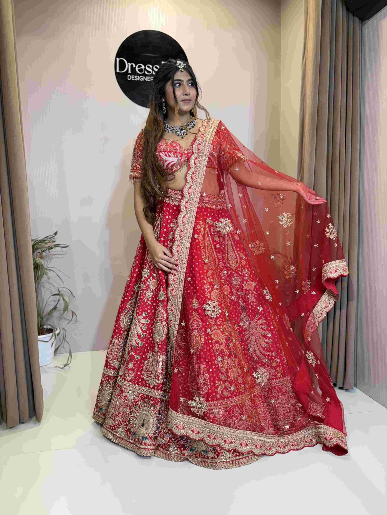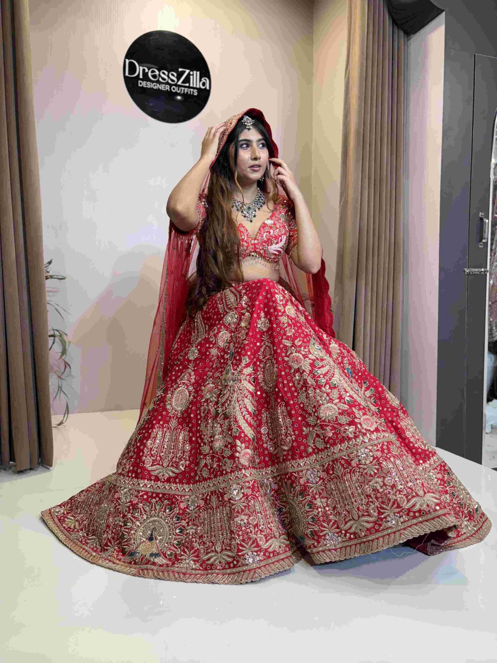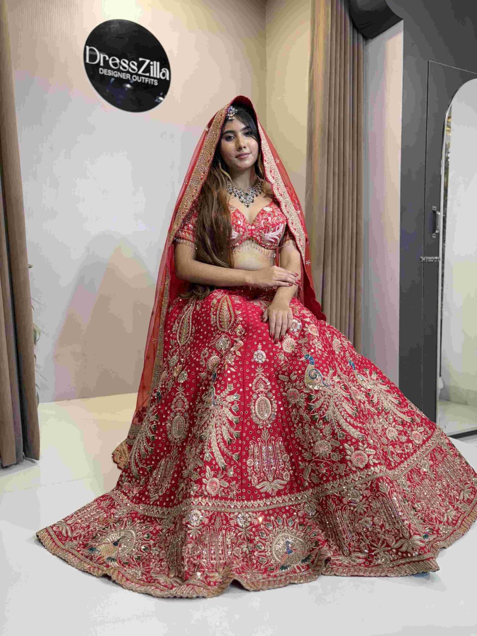 Red Mirror Work Bridal LehengaRed Mirror Work Bridal Lehenga