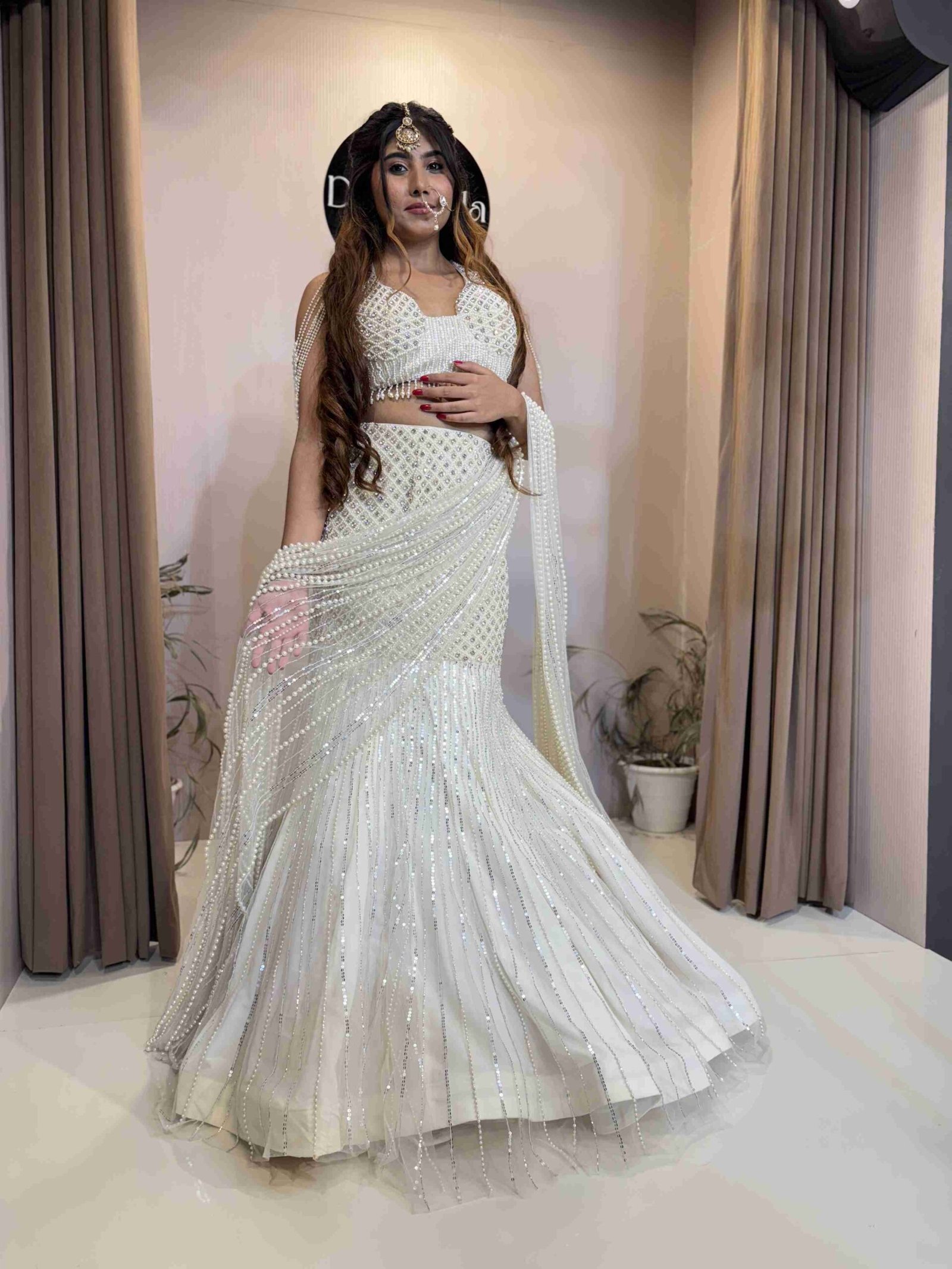 The White Pearly Fishcut is a graceful and elegant ensemble designed to make you stand out. Crafted in a pearl white shade, it features exquisite pearl embroidery that adds a touch of sophistication and charm. Perfect for festive occasions or parties, this fishcut design beautifully enhances your silhouette while offering a luxurious and refined look.